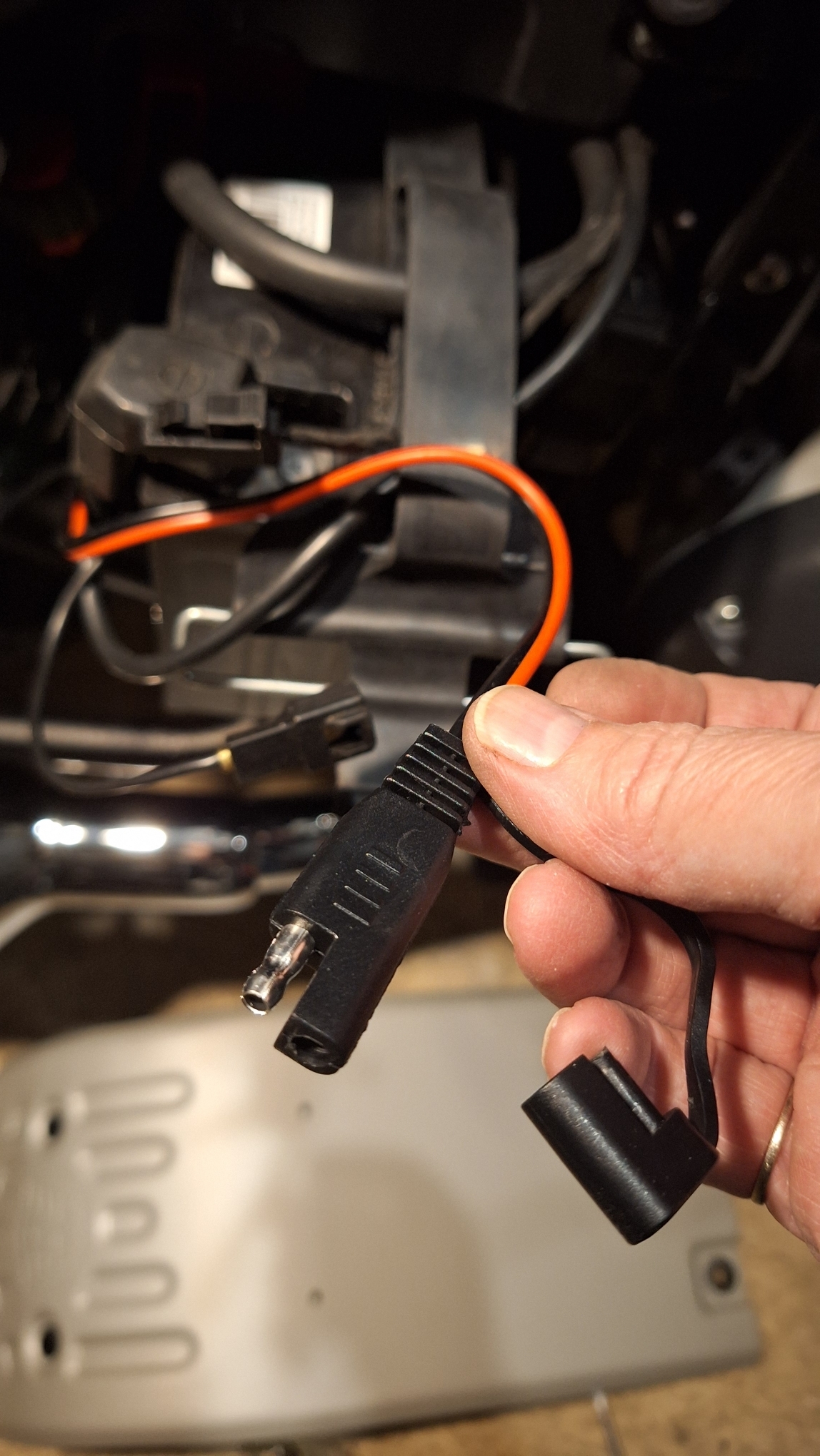 Ensuite j'ai mis une prise sur la batterie pour pouvoir la maintenir en charge sans rien démonter.