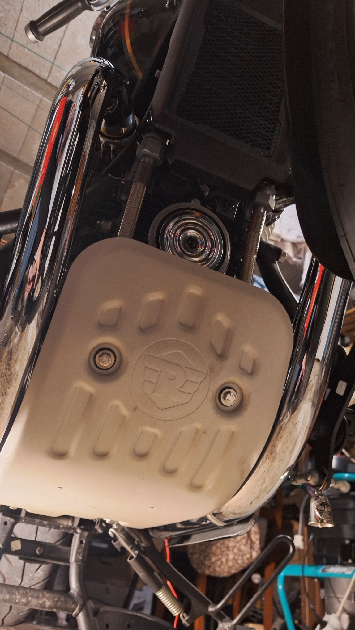 J'ai mis un protège frein arrière. En fait cette pièce est unique.